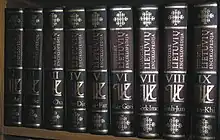 The Visuotinė lietuvių enciklopedija or VLE (transl. Universal Lithuanian Encyclopedia) is a 25-volume universal Lithuanian-language encyclopedia published by the Science and Encyclopaedia Publishing Institute from 2001 to 2014. VLE is the first published universal encyclopedia in independent Lithuania (it replaces the former Lietuviškoji Tarybinė Enciklopedija which was published in thirteen volumes from 1976 to 1985). The last volume, XXV, was published in July 2014.[1] An additional volume of updates, error corrections, and indexes was published in 2015.[2] The encyclopedia's twenty-five volumes contain nearly 122,000 articles and about 25,000 illustrations. Since June 2017, VLE is published as an online encyclopedia being updated to present day.[3]