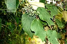 Vitis bellula, commonly known as the beautiful grape or small leaf hair grape, is a Chinese liana (woody vine) in the grape family.[2] It is native to the provinces of Guangdong, Guangxi, Hubei, Hunan, and Sichuan. The plant grows at elevations of 400–1,600 m (1,300–5,200 ft) and bears medium-sized purplish-black grapes.