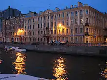 At the time, Purishkevich was living in the Hotel Russia at Moika 60. He had a false passport under the surname "Yevreinov". On 18 November 1917, Purishkevich was arrested by the Red Guards for his participation in a counterrevolutionary conspiracy after the discovery of a letter sent by him to General Aleksei Maksimovich Kaledin in which he urged the Cossack leader to come and restore order in Petrograd.[20] He became the first person to be tried in the Smolny Institute by the first Revolutionary Tribunal.[20] He was condemned to eleven months of 'public work' and four years of imprisonment with obligatory community service and won the admiration of his fellow prisoners in the Fortress of St Peter and St Paul by his courageous bearing.[21] He was given an amnesty on May 1 after the mediation of Felix Dzerzhinsky and Nikolay Krestinsky, as he refrained from any political activity.[20] In jail, he had written a poem describing the Treaty of Brest-Litovsk as 'The Trotsky Peace'.