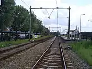 The station was opened in 1986 and is a typical suburban station. There are two platforms, which do not lie opposite each other, but located on either side of the level crossing. On the eastern platform there was originally a station building with waiting area and ticket office; a standard design of architect Hans Bak. In 2007 the building was demolished; the staffed ticket office had closed four years earlier. It has broadened the platform on the site of the former building.