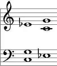 Vogel claims that his formula entails also compositional consequences. If one wants a chord to be consonant, major chords should be composed such that thirds and sevenths are set in a high register. Minor chords, however, would have to be set the other way round, with thirds and sevenths being set in a low register. This is by no means compatible with the compositional practice of the last centuries (with perhaps the exception of the Tristan chord, see below). In consequence, minor chords set along Vogel's composition rules sound unfamiliar. They exhibit, however, a better congruency of harmonics than their classical variants. The left-hand of the two C minor chords in the adjoining figure is composed in the classical way, with the third being set in a high register. The consonance value for this chord is 4.33. The right-hand minor chord features a low third. It sounds unfamiliar. Its consonance value is, however, much lower (3.0), and the congruency of its harmonics is much better.