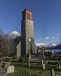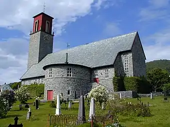 Volda Church (Norwegian: Volda kyrkje; Voldskyrkja) is a parish church of the Church of Norway in the municipality of Volda in Møre og Romsdal county, Norway. It is located in the village of Volda, along the northeastern shore of the Voldsfjorden. It is the church for the Volda parish as well as the seat of the Søre Sunnmøre prosti (deanery) in the Diocese of Møre. The large stone church was built in a long church design in 1932 using plans drawn up by the architect Arnstein Arneberg. The church seats about 800 people.[1][2]