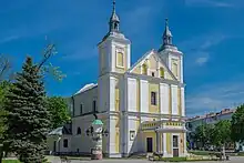 In the early 14th century, the Metropolitan of Kiev and all Rus', Theognostus, resided in the city for several years before moving to Moscow.[7] In 1349, the Polish king, Casimir the Great, captured the city, and subsequently it became part of the Kingdom of Poland. The Polish king began building a castle, destroyed by Lithuanians after 1370,[8] and established a Catholic bishopric in the city (known as Włodzimierz), later transferred to nearby Lutsk, which in the 15th century instead of Volodymyr became the leading city and capital of Volhynia.[9] In 1370, it was taken by the Grand Duchy of Lithuania (after 1386, part of the Polish–Lithuanian Union) and it was not until the Union of Lublin of 1569 that it returned to the Crown of Poland.[9] In the meantime, the city was given Magdeburg town rights in 1431. In 1491 and 1500, it was invaded by Tatars.[8] From 1566 to 1795 it was part of the Volhynian Voivodeship. It was a royal city of Poland. Most of the city's landmarks were built at that time, including the Baroque church of St. Joachim and St. Anne, the Jesuit church, the Dominican monastery and the chapel of St. Josaphat. Włodzimierz was also a garrison town, with the 6th Polish Infantry Regiment stationed there in 1790, and the 2nd Polish National Cavalry Brigade stationed there in 1794.[10]