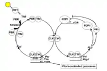 - ↑ Cyran SA, Buchsbaum AM, Reddy KL, Lin MC, Glossop NR, Hardin PE, et al. (February 2003). "vrille, Pdp1, and dClock form a second feedback loop in the Drosophila circadian clock". Cell. 112 (3): 329–41. doi:10.1016/S0092-8674(03)00074-6. PMID 12581523.