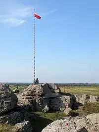 The Germans agreed to allow burial of the corpses of Raginis and Lieutenant Stanisław Brykalski by Kazimierz Puchowicz, a friend of Raginis, next to the bunker where a tree was planted as an impromptu memorial.[14] When the Red Army entered Wizna, the Soviet authorities ordered the bodies to be dug up and moved next to the Łomża - Białystok road, where an obelisk stands today.[14][15] His symbolic grave is located next to the ruins of the bunker in which he died.[14][15]