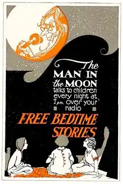 The station soon expanded to feature a wide variety of live programming. A popular early feature was the "Man in the Moon" bedtime stories, written by Josephine Lawrence and read over the air by Bill McNeary (both were Newark Sunday Call employees). Beginning on November 27, 1921, a weekly 90-minute show presented by the Vincent Lopez band was aired.[13]