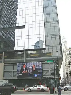 On September 21, 2008, WBBM-TV moved to new facilities in the "Block 37" studio at the corner of Dearborn and Washington streets, with a 30-by-19-foot (9.1 m × 5.8 m) LED screen that adorns the lower facade of the 17-story building (which some residents complained is "tacky and visually hyperactive").[19][20] This move coincided with the upgrade of channel 2's newscasts to high definition, making WBBM the fourth television station in the Chicago market to begin broadcasting their newscasts in the format (field footage converted to the format over a period of years); in early 2006, the WBBM radio stations moved into new studio facilities within Two Prudential Plaza on North Stetson Avenue. The former McClurg Court facility building was demolished over a two-month period from February to April 2009. WBBM-TV moved its news set upstairs to a more traditional studio in September 2017 after an obligation to maintain its main studio in the streetside space for ten years was fulfilled, with CBS eventually removing the LED screen and putting the space up for retail lease in 2019, though with no interest coming in during the COVID-19 pandemic, WBBM-TV returned to using it late in 2020 to allow for wider social distancing of station workspaces.[21]