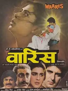 Waaris (transl. Heir) is a 1988 Indian Hindi-language film directed by Ravindra Peepat. It stars Smita Patil, Raj Babbar, Amrita Singh, Raj Kiran in lead roles. The film was adapted from the Punjabi novel Kaara — Hatthi by Sohan Singh Hans (as credited in the film). Audience had a mainstream story with some Masala quality entertainment. Hindi film actress Rekha dubbed the lines for late actress Smita Patil who died before the film's release. Patil won the Best Actress trophy at the 2nd Star & Style-Lux Awards.[1]