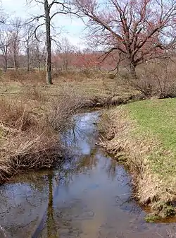 There are pools on Walker Run near the bridge carrying North Market Street over the stream. These pools are surrounded by trees.[7] Walker Run has surrounding wetlands in some places.[8]