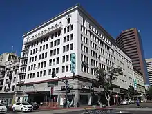 In 1935, the former Holzwasser's department store building, in San Diego's downtown shopping district at the northwest corner of 5th and Broadway, had been sitting empty for over two years after the 1933 liquidation of Holzwasser's, once San Diego's largest department store.[4] The Spanish Colonial Revival building had been built in 1919; John Terrel Vawter was the architect.