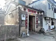Tin Sam was founded during the late Ming dynasty.[24] Historic buildings in the village include the Choi,[25][26] Leung[27][28] and Liu ancestral halls,[25] and the Entrance Gate, built during the Qing dynasty.[29] | ![]() |