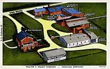 Kelley and his wife Ida started a beekeeping supply company, called The Walter T. Kelley Company in 1926. He sold durable cypress hives and woodware originally built in Louisiana then later at his factory in Paducah,Kentucky. He created or greatly improved upon ventilated bee gloves (1938), wired foundation (1939), bee blowers (1969), and plastic bottom boards (1975).[2] Kelley's business included a 100-acre (400,000 m2) farm in Cade, Louisiana, where his queen and package bee operation grew to 1500 colonies. He sold queens and replacement bees throughout North America. After 85 years the company is still providing beekeeping supplies today after moving from Paducah, Kentucky, to Grayson County, Kentucky, in the early 1950s when the cost of labor increased due to the building of the Paducah Gaseous Diffusion Plant.