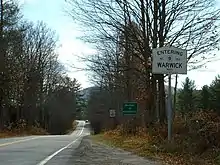 According to the United States Census Bureau, the town has a total area of 37.6 square miles (97.5 km2), of which 37.3 square miles (96.7 km2) is land and 0.31 square miles (0.8 km2), or 0.83%, is water.[5] The geography of Warwick is dominated by Mount Grace. This mountain is located in the center of town and has a network of hiking and cross-country ski trails. Most of the mountain is owned by the state (as part of Mount Grace State Forest) and open to the public. The Metacomet-Monadnock Trail passes over the 1617 foot (493m) summit. Approximately a third of the town's land is protected as part of the Warwick State Forest thereby offering a variety of outdoor activities for the public. There are several ponds, some created by dammed brooks in Warwick, including Moores Pond, Sheomet Lake, Laurel Lake, Wheeler Reservoir, Richards Reservoir, Hastings Pond and Stevens Swamp, a mosaic of wetlands. A small wildlife management area is also located within town. The Mount Grace Land Conservation Trust, which was founded by Warwick resident Keith Ross in 1986, pays homage to the mountain by dint of its name, though its land protection activities take place in 23 municipalities.[6]