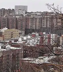 The process underlying this segregation is exemplified in the history of one of Washington Heights’ most famous apartment buildings: 555 Edgecombe Avenue. Built in 1914, the fourteen-story building rented to various relatively affluent White people until 1939, when the owner cancelled all the tenants’ leases and began renting exclusively to Black people.[48]: 5 While organizations like the Neighborhood Protective Association of Washington Heights had kept the neighborhood virtually all-White throughout much of the 20th century,[49]: 248 the overcrowded conditions of Harlem led to growth in demand for apartments outside the neighborhood.[50]: 35