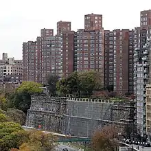 As crime decreased, Washington Heights also saw a recovery of many of its community institutions, including parks.[38] Fort Tryon Park had fallen into a period of decline after the 1975 New York City fiscal crisis, when evaporated Parks Department funds left its walkways and playgrounds in a state of disrepair,[107] and several corpses were found in the park.[108][109]