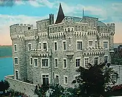 With a picturesque view of the Palisades, the elevated ridge of northwest Washington Heights became the site of a few modern castles. The first of these was Libbey Castle, built by Augustus Richards after he purchased the land from Lucius Chittenden in 1855.[12]: 160 Located near Margaret Corbin Circle,[29]: 23 this estate was once owned by William "Boss" Tweed but got its current name from William Libbey, who purchased it in 1880.[30] Even more extravagant, Paterno Castle was situated on the estate of real estate developer Charles Paterno by the Hudson River at 181st Street.[31] Built in 1907, the mansion was demolished thirty years later for Paterno's Castle Village complex, where pieces of the original structure still remain.[22]: 12 [32]
