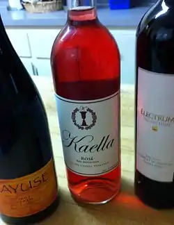 Washington wine is a wine produced from grape varieties grown in the U.S. state of Washington. Washington ranks second in the United States (behind California) in the production of wine.[3] By 2017, the state had over 55,000 acres (220 km2) of vineyards, a harvest of 229,000 short tons (208,000 t) of grapes, and exports going to over 40 countries around the world from the 940+ wineries located in the state.[4] While there are some viticultural activities in the cooler, wetter western half of the state, the majority (99.9%) of wine grape production takes place in the shrub-steppe eastern half.[5] The rain shadow of the Cascade Range leaves the Columbia River Basin with around 8 inches (200 mm) of annual rain fall, making irrigation and water rights of paramount interest to the Washington wine industry. Viticulture in the state is also influenced by long sunlight hours (on average, two more hours a day than in California during the growing season) and consistent temperatures.[6]