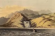 It is not known when Waterfall Bay was first discovered.[3] The first English-language mention of Hong Kong or the waterfall was in Dr. Clark Abel's "Narrative of a Journey to China," which recounted his 1816 travels with William Amherst on Amherst's failed mission to China.[1] Lord Amherst used the bay as the rendezvous point for his ships before proceeding north. The visit produced the first engravings of the falls.[4]