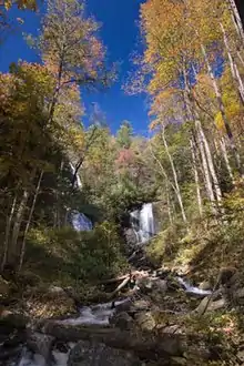 - Dick's Creek Falls—a pair of falls just below the site where Waters Creek joins Dicks Creek in the Chattahoochee National Forest. (34°40.782′N 83°56.202′W / 34.679700°N 83.936700°W)