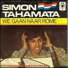 "We gaan naar Rome" (English: We're going to Rome) is a Schlager song by Simon Tahamata an association football player, who played for AFC Ajax and the Netherlands national team at the time of release which was in 1979 on Dutch label GIP.[1] The song is the A-side to the record "We gaan naar Rome / Hallo mensen, hier is Rome" which was released as a 7"-single. The song was released prospectively in regard to the UEFA Euro 1980, following the Netherlands qualification to the finals amongst the last 8 of the tournament. Ajax star Simon Tahamata recorded this record implying the Dutch would reach the final hosted at the Stadio Olimpico in Rome. The Netherlands lost their first two matches to Greece and West Germany while beating Czechoslovakia in their last match, finishing third in their group and thus failing to advance past the group stage.[2]