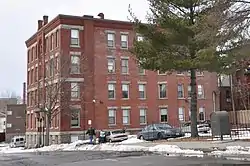 The Wellington Street Apartment House District of Worcester, Massachusetts encompasses a collection of stylistically similar apartment houses in the city's Main South area. It includes sixteen properties along Jacques Avenue, and Wellington and Irving Streets, most of which were built between 1887 and 1901. The notable exception is the Harrington House at 62 Wellington Street, a c. 1850s Greek Revival house that was virtually the only house standing in the area before development began in the 1880s.[2]