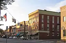 The Pink House is an Italianate-Revival mansion built in 1869 and located on the corner of West State Street and South Brooklyn Avenue. It is renowned for its architecture as well as for the ghost story attached to it.[16] Many stories purport that the house is haunted by the ghost of a girl who drowned in the front fountain as well as her aunt, Mary Francis Farnum, who committed suicide in a nearby mill race after a failed love affair and whose tragic demise was the inspiration for Hanford Lennox Gordon's famous poem "Pauline." The Pink House enjoys another literary association, as the setting for the 1987 Emmy-Award-winning film The Birthmark, based on Nathaniel Hawthorne's short story of the same name.[17] Exterior and interior scenes were filmed at the Pink House. The Pink House is a private residence still owned by descendants of the original owners.