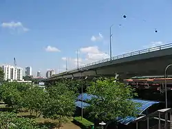 The Land Transport Authority started modifying and extending the highway in the late 1990s, in response to the increased amount of traffic using it. Its intersection with Clementi Road was widened in 2000.[2] To allow motorists to bypass intersections at Pasir Panjang Road, LTA's plans also called for the construction of a viaduct that would provide a direct link from the highway to Keppel Road on the outskirts of the city area. The viaduct was built in two phases of 2.4 km each. The first phase, from Keppel Road to Telok Blangah Street 31, started construction in 1998 and was opened to traffic on 27 April 2002.[3]