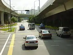 Despite what its name may suggest, the speed limit on the highway is less than that of an expressway. The highway also has a few traffic light junctions, something that expressways do not have. The at-grade section of the highway is a three-lane dual carriageway, and the viaduct is a two-lane dual carriageway with a 1-metre hard shoulder. At a length of 5 km, the viaduct is the longest in Singapore.[1]