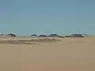 The Western Desert of Egypt is an area of the Sahara that lies west of the river Nile, up to the Libyan border, and south from the Mediterranean Sea to the border with Sudan. It is named in contrast to the Eastern Desert which extends east from the Nile to the Red Sea. The Western Desert is mostly rocky desert, though an area of sandy desert, known as the Great Sand Sea, lies to the west against the Libyan border. The desert covers an area of 680,650 km2 (262,800 sq mi) which is two-thirds of the land area of the country.[1] Its highest elevation is 1,000 m (3,300 ft) in the Gilf Kebir plateau to the far south-west of the country, on the Egypt-Sudan-Libya border. The Western Desert is barren and uninhabited save for a chain of oases which extend in an arc from Siwa, in the north-west, to Kharga in the south. It has been the scene of conflict in modern times, particularly during the Second World War.