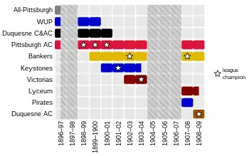 - Pittsburgh Athletic Club (1896–1904, 1907–1909)