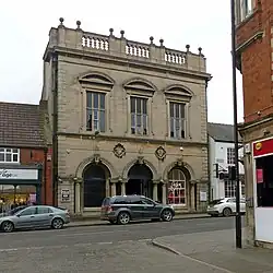 In the mid-19th century, a group of local businessmen decided to form a private company, known as the "Grantham Corn Exchange Company", to finance and commission a purpose-built corn exchange for the town.[2] The site they selected was on the east side of Westgate. The building was designed by Anthony Salvin in the neoclassical style, built in ashlar stone and was completed in 1852.[3]