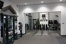 The station itself was refurbished in 1986 with a new booking office.[4] A few years later the canopy was renewed. This saw the removal of a few bays of the canopy at the east end of the station, and the replacement of the hipped canopy by a simpler modern design, although the original cast iron columns support this. Some hipped bays remain on the road side of the station entrance as a reminder of how it all once looked.