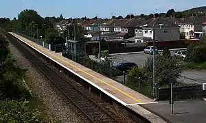 All trains are operated by Great Western Railway. The basic pattern of services is for an hourly train between Weston-super-Mare and Severn Beach which calls at all stations.[5] There are a few commuter services which run instead to Cardiff Central or to Bath Spa and then on to London Paddington. Many of these services are operated by Class 800s which are too long for the platform, so only the first seven coaches are able to stop alongside the platform.