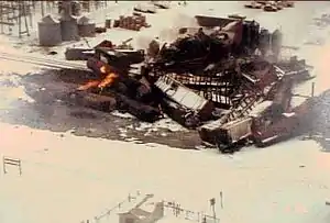 ![]() Overhead view of the derailment site taken March 5, 1996 | |