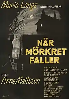 When Darkness Falls (Swedish: När mörkret faller) is a 1960 Swedish thriller film directed by Arne Mattsson. The film is based on Maria Langs 1954 novel Tragedi på en lantkyrkogård. The film stars Nils Asther, Karl-Arne Holmsten, Birgitta Pettersson, Elsa Prawitz, Adolf Jahr, Mimi Nelson and George Fant.[1] It was shot at the Centrumateljéerna Studios in Stockholm. The film's sets were designed by the art director Barbro Lindström. It was followed by a sequel Lovely Is the Summer Night in 1961.