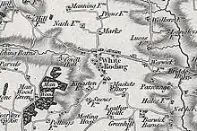 Traditional alternative names for the parish and village include White Roothing, White Rooding and Roding Alba, although the parish was contemporaneously referred to with the 'Roding' suffix in trade directories, gazetteers, sources, and in official documents and maps. Today the official parish and village name for local, district and parliamentary governance is 'White Roding', although some sources, particularly Ordnance Survey, will also include the 'Roothing' suffix for both the village and parish.[4][5][6][7][8][9] The parish is "supposed to have taken its name from the whiteness of the church when new".[3][10][11][12][13]