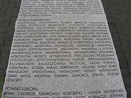 ![]() Monument in memory of the Polish victims of Volhynian massacre including Wiśniowiec Nowy and Wiśniowiec Stary, Warsaw | |