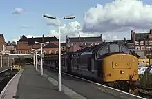 There was a limited freight service through Wigan Wallgate during the early 2000s, operated by EWS running to Knowsley Freight Terminal on the Kirkby line - these were suspended from 2006 onwards. Most freight services through Wigan run through nearby Wigan North Western on the West Coast Main Line. As of June 2016, freight service to Knowsley Freight Terminal has been reinstated which uses Wallgate instead of Wigan North Western, where most freight operates. The new service runs to/from Teesside 6 days per week.[11]