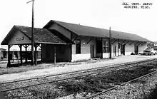 The G&SIRR was completed between Gulfport and Hattiesburg on January 1, 1897, and the town of Wiggins was the busiest population center along that route.[4][5] In 1903, Finkbine Lumber Company opened a new sawmill in Wiggins,[6] which required rail transportation for delivering logs to the mill and for shipping lumber to outside markets. The original G&SIRR depot in Wiggins was a two-story structure, but it was destroyed by fire on January 21, 1910.[4]