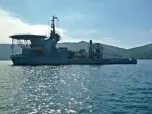 The MS Wildrake was a diving support vessel constructed for and owned by Anders Wilhelmsen AS, a Norwegian shipping company. It had a built-in saturation diving system designed and built by another Norwegian company, Møllerodden AS.[9] In May 1979, Infabco began negotiations for exclusive rights to the Wildrake.[10] In June and early July, with the Wildrake moored near Ulsteinvik, Infabco personnel prepared its diving system for use. The system was certified by Det Norske Veritas (DNV) on 3 July 1979.[11] In mid-July, 17 bell runs were conducted from the Wildrake to prepare the SALM base for the reattachment.[12]