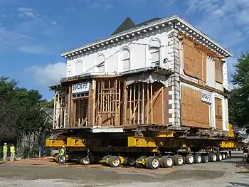 When the now four-acre property was sold to a buyer who wished to demolish the house and build a nursing home and assisted living center, real estate developer Neil Wilson bought the house, intending to preserve and restore it. With assistance from the Palmetto Trust for Historic Preservation and members of the Greenville community, the necessary $720,000 to move the house was raised in 2014. The funeral home additions were demolished, and on September 6, 2014, the approximately 750-ton house was moved a few blocks from Augusta Street to Mills Avenue—probably becoming in the process the heaviest structure ever moved in South Carolina.[8]