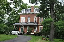 The William Austin House, built in 1870, is architecturally significantly as an outstanding example of Second Empire style domestic architecture in the village of Trumansburg, Tompkins County. Characterized by a prominent, slate-clad Mansard roof, polychrome masonry construction, asymmetrical massing and elaborate, Victorian era ornamentation, it embodies all of the distinctive characteristics of the type and period.