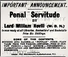 - Nevill, Lord William Beauchamp (28 January 1903). Penal Servitude. London: William Heinemann.[nb 7]