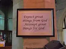 - ↑ "William Carey's Historical Wall – Carey Road, Pury End, Northamptonshire, UK". UK Historical Markers. Waymarking.com. Retrieved 9 July 2016. Includes image of memorial stone