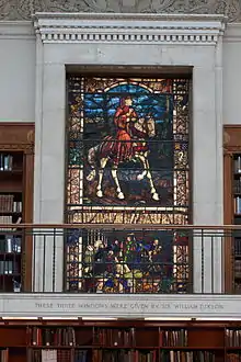 When Dixson's collection, that included some pictures by artists who accompanied James Cook on his exploratory voyages and eight of the Pedro de Queirós memorials,[21] was transferred to the State Library after his death in 1952, it formed the Dixson library in the State Library of New South Wales. The Chaucer windows, bronze entrance doors and Shakespeare Library chandelier were also part of the bequest.[8] The bequest also included £15,000, the income of which is used to buy historical pictures.