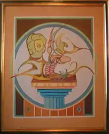 If, as a sculptor, he had favored the use of clay, as a painter he created mostly paintings in oil on canvas or wood, along with some pastels and the occasional tempera. Towards the end of the 1970s he invented his own graphics technique, a technique he never divulged.[14]