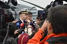In his roles as Public Affairs Officer for the Defence Intelligence Agency and Chief of Media for the U.S. Navy, Marks has frequently appeared in the press and other media explaining U.S. policies as they changed as a result of the "War on Terror". He has been the spokesman for military policy in a number of important areas including the largest search in history, the Search for Malaysia Airlines Flight 370.[2] At the height of the media interest in the plane search, Marks and his 7 sub-ordinates gave 26 interviews and answered 200 email requests for information during a 24 hour period.[2] Eventually his team gave 182 live interviews over a 30-day period before the search was concluded.[3] While serving at the Pentagon he was the lead spokesperson for environmental, medical and legal issues.