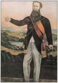 His militancy placed him at odds with the aristocratic leadership of the Orange Order.[10] Since the Fenian-organised funeral in Dublin for Terence McManus in 1861, Johnston had been asking: "If Nationalists are allowed such mobilisation, why are loyal Orangemen not allowed to march freely".[11] On the Orange Twelfth 1867, he forced the issue by leading a large procession of Orangemen from Bangor to Newtownards in County Down. The contravention of the Party Procession Act earned him a two month prison sentence.[5][12]