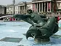Nereid and Triton with Dolphins, the Beatty Memorial Fountain | Trafalgar Square, London | 1948 | Two sculpture groups in fountain | Bronze | Grade II* | Q29295257 | Architect, Edwin Lutyens.[18][19] |