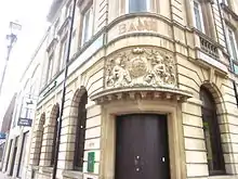 - Lloyd’s Bank, 202 High Street/ St Benedicts Square. 1901-3.[24] Stone facade. The building originally had a cupola, Described in Pevsner as ‘‘Dehydrated Georgian Baroque’’- it is actually quite good and more Classical than normal Edwardian Baroque Revival architecture.[25]